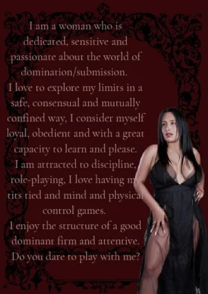 I am a lustful girl eager to please your greatest desires, and obviously mine, I enjoy every action I do but what makes me feel good the most is Bondage.