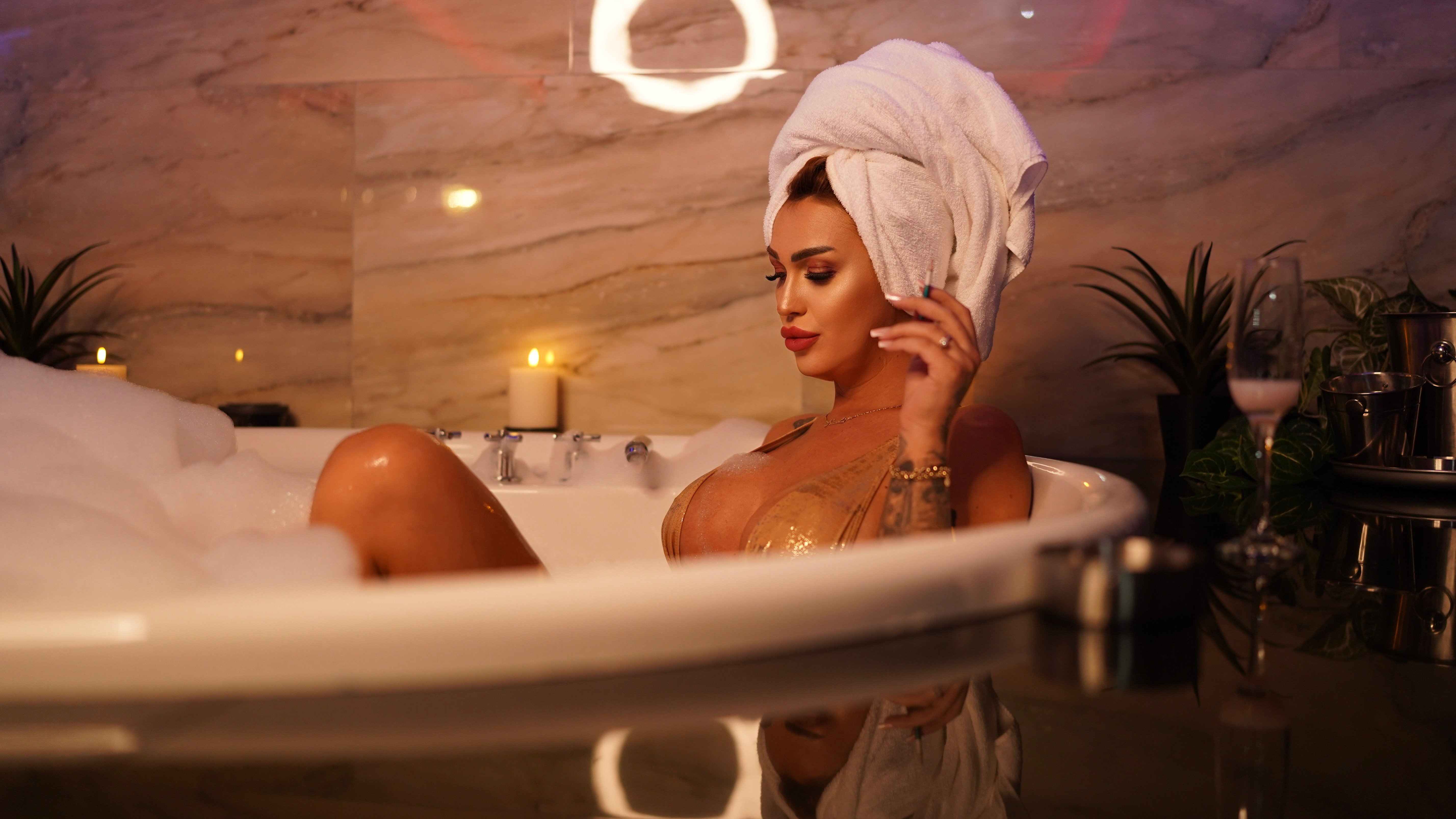 "In the hot tub with bubbles and wet skin… I take my top off and let your fantasies get soaking wet